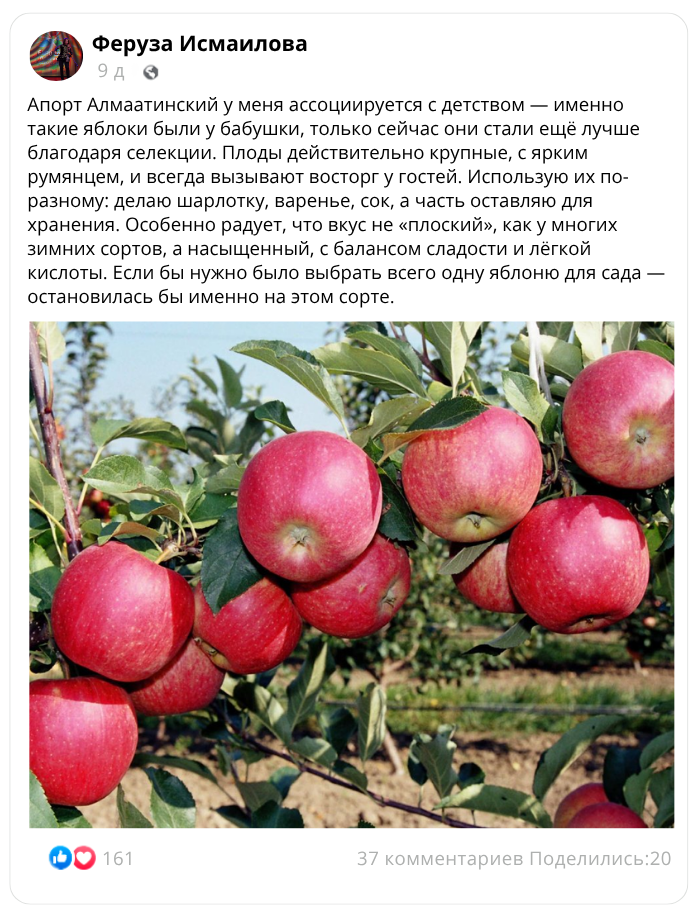 "Апорт Алматинский" нави афзалликлари