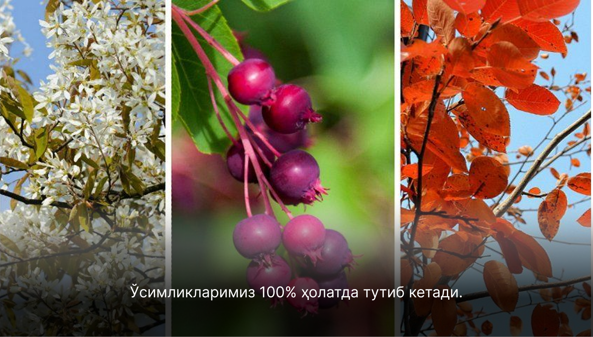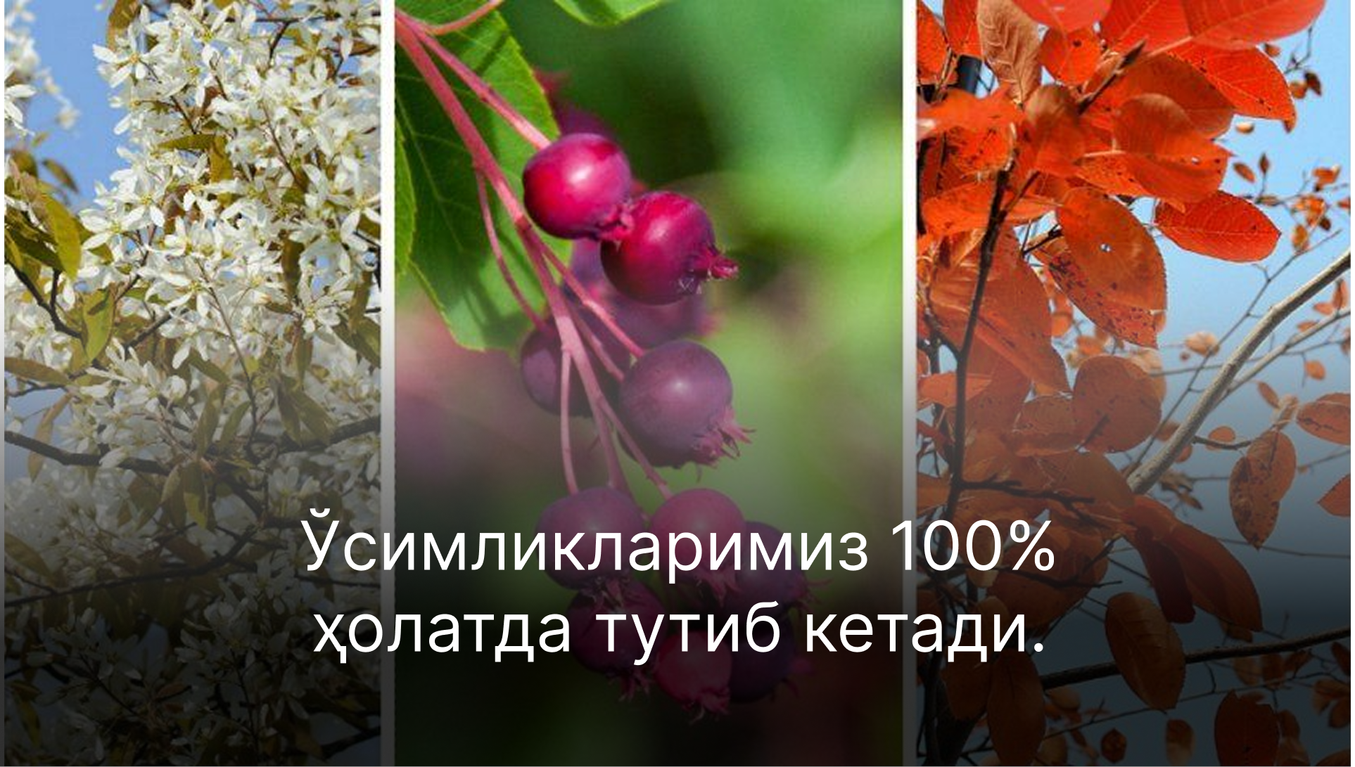 Биз ўсимликларимиз бутун Ўзбекистон бўйлаб ҳосили ва гўзаллиги билан қувонтираётганидан фахрланамиз.