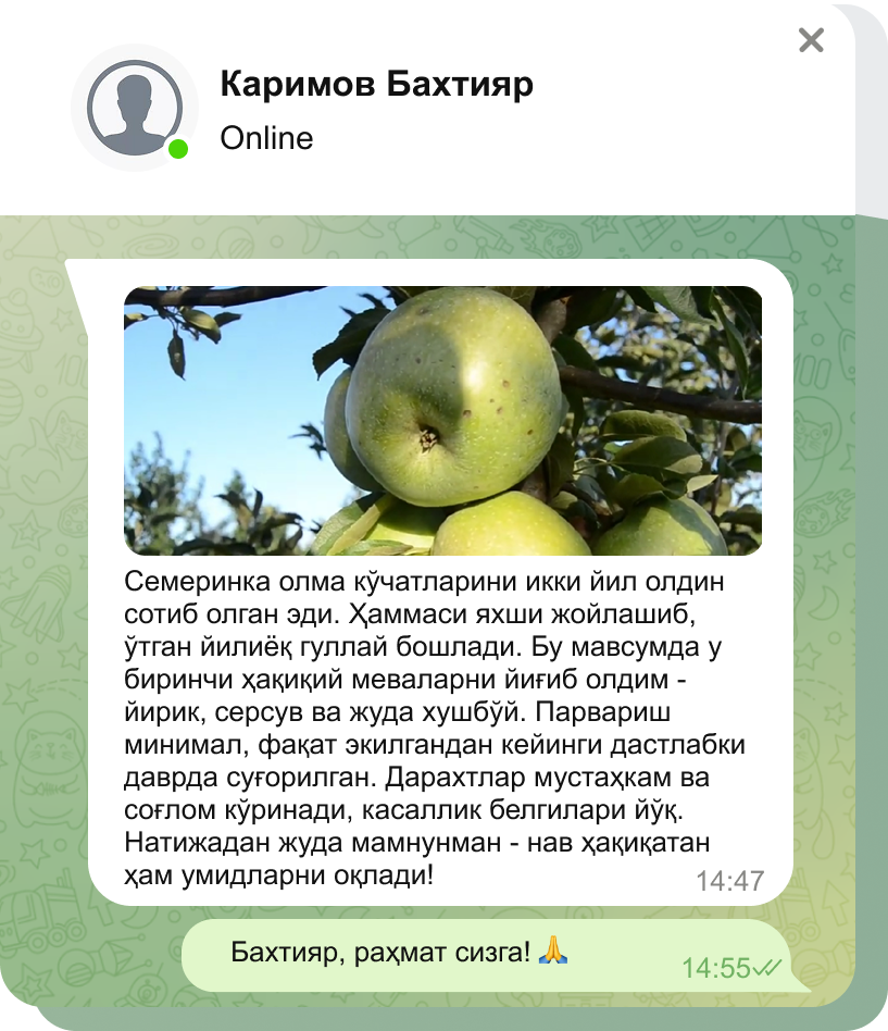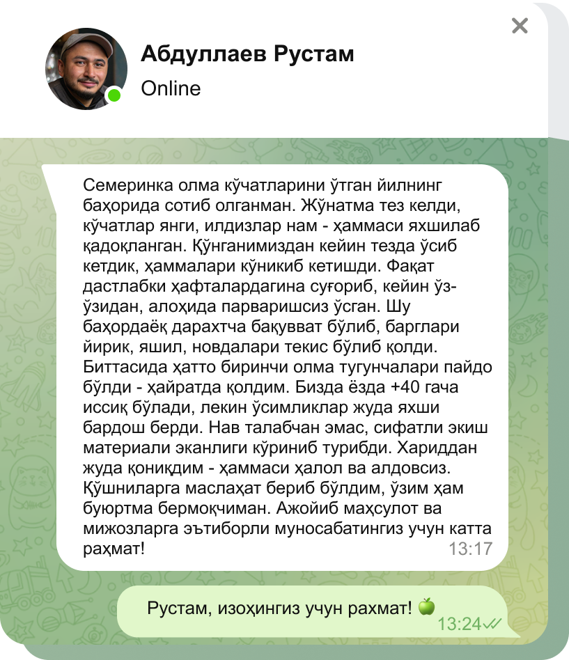 Харидорларимизнинг мўл ҳосили - кўчатларимизнинг энг яхши рекламаси